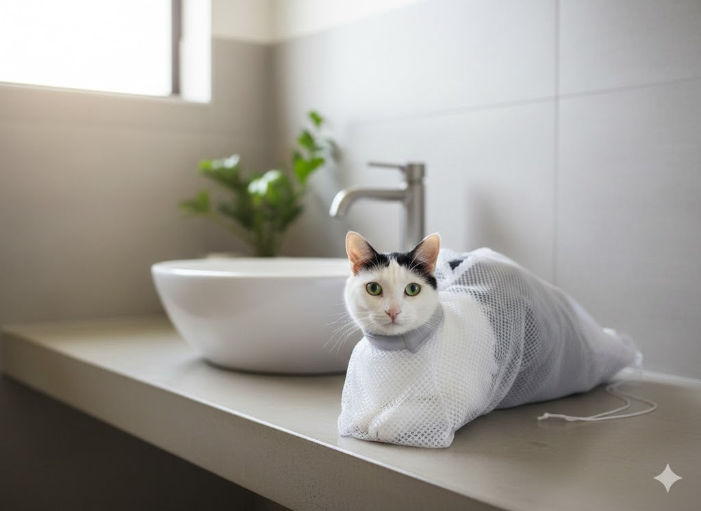 The Bath Sack™ is an essential grooming tool designed for both pet owners and professional groomers. We know that bathing an unruly cat can be a challenge; The Bath Sack™ transforms a stressful task into a controlled, simple process. Featuring a quick-close hook-and-loop collar that adjusts to any neck size and a secure rear drawstring, it ensures your pet stays safe and snugly contained throughout their bath.