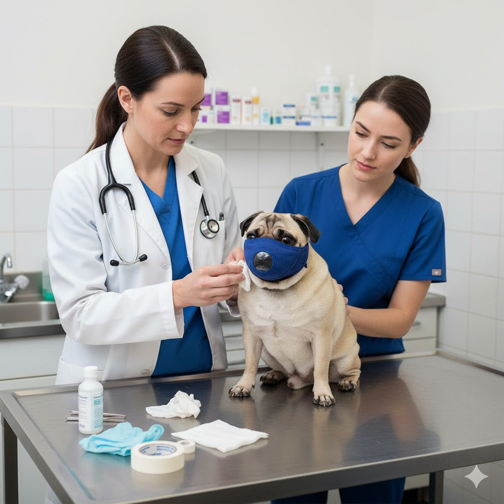 The Pug-Nosed Quick Muzzle® is a specialized restraint muzzle designed to fit the unique facial structure of brachycephalic (flat-faced) dogs. This durable muzzle is engineered to ensure the safety of both the dog and handler during examinations, grooming, or potentially stressful situations.
